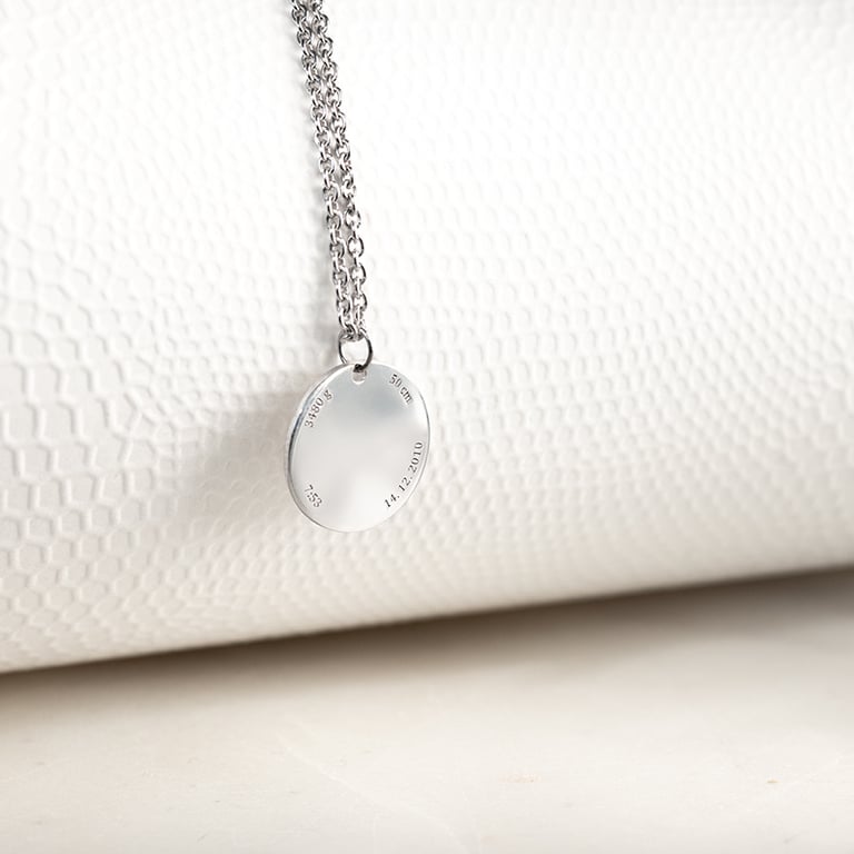 • auf Wunsch können wir einen beliebigen Text oder Initialen auf der Rückseite des Anhängers eingravieren