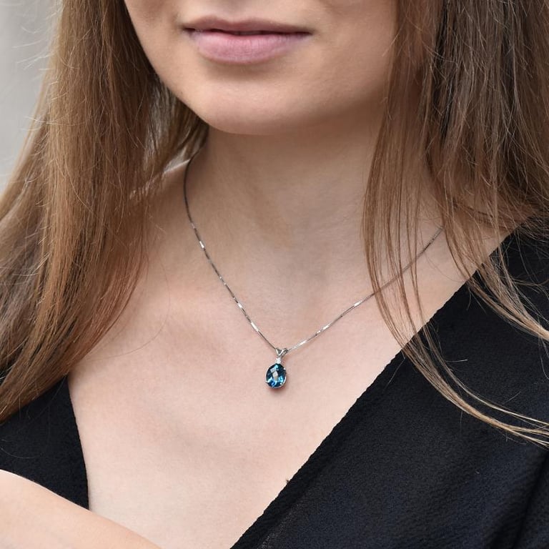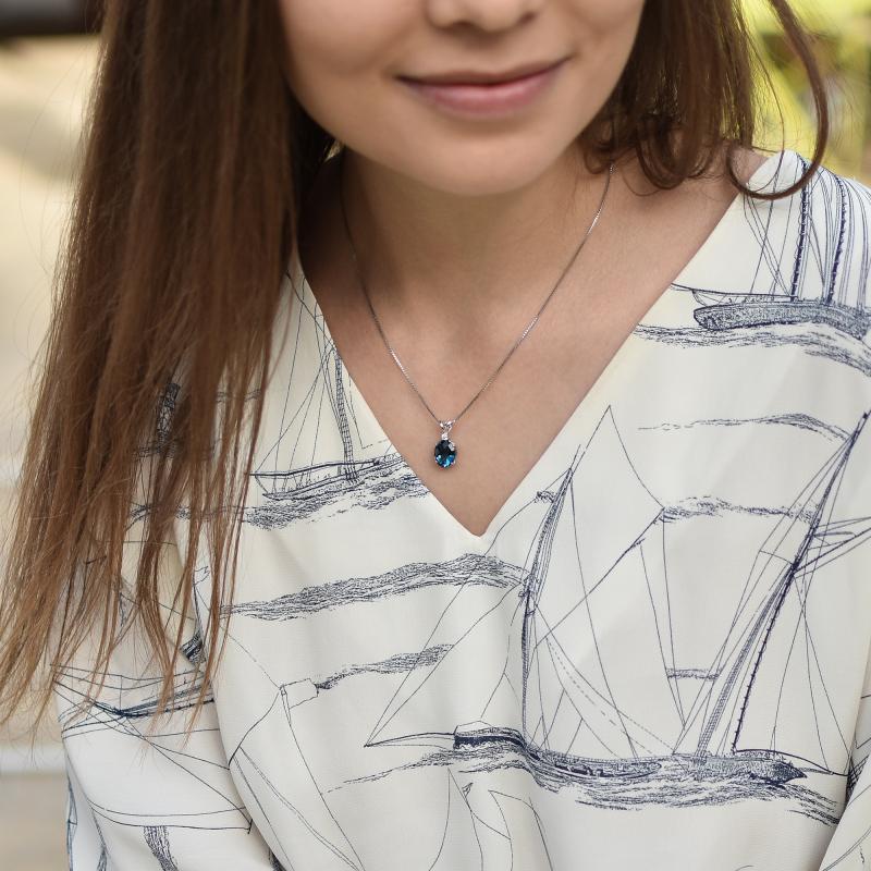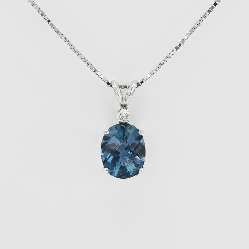 • der Anhänger mit einem blauen Topas und einem kleinen Diamanten ist ein schönes und modernes Accessoire