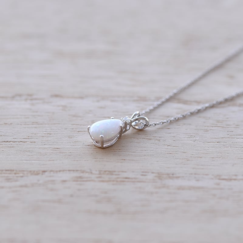Goldener Anhänger mit weißem Opal und Diamant Raulla