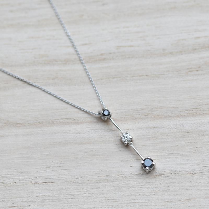 • der Originalanhänger aus 14k Weißgold ist mit drei Diamanten in Weiss und schwarz besetzt