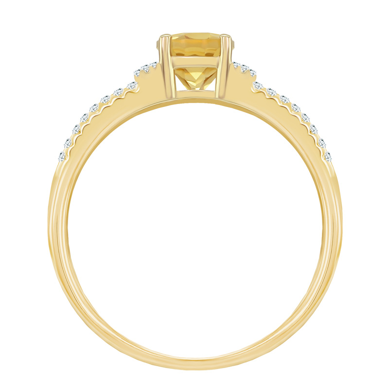 • Goldring mit ovalem sonnengelben Citrin umgeben von Diamanten