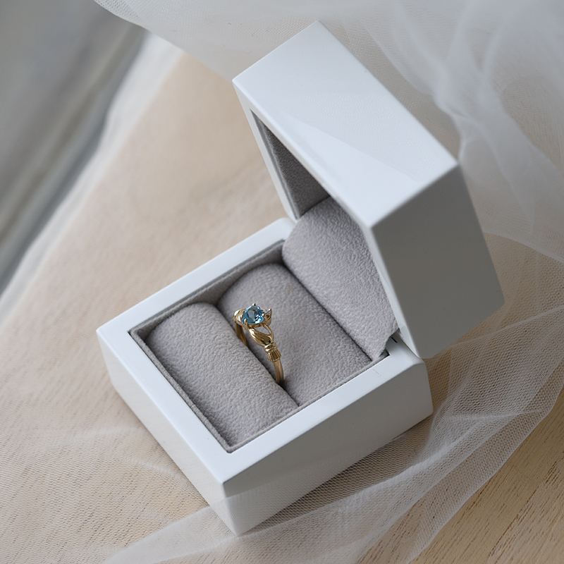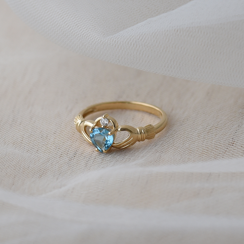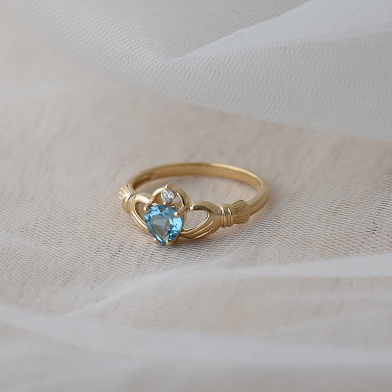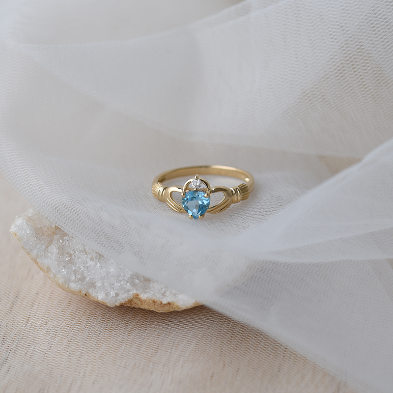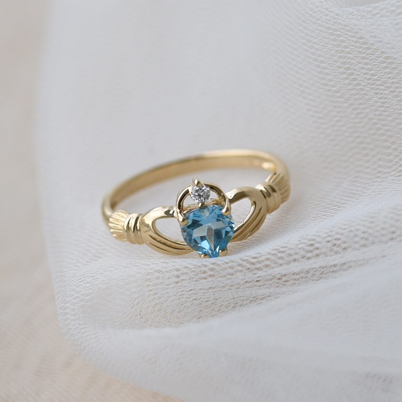 Goldener Claddagh-Ring mit Topas und Diamant Norie