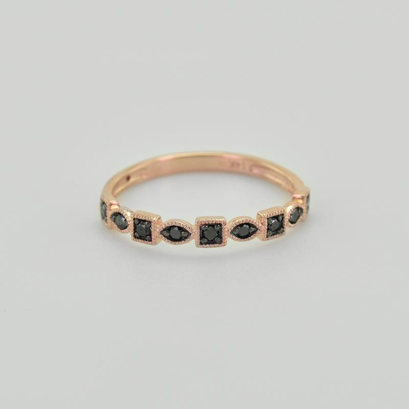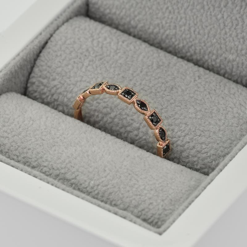 • sehr interessante Eheringe mit einem traditionellen Ring und einem zarten Ring mit schwarzen Diamanten, die rund und viereckig gefasst sind