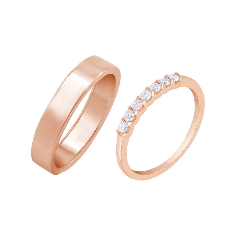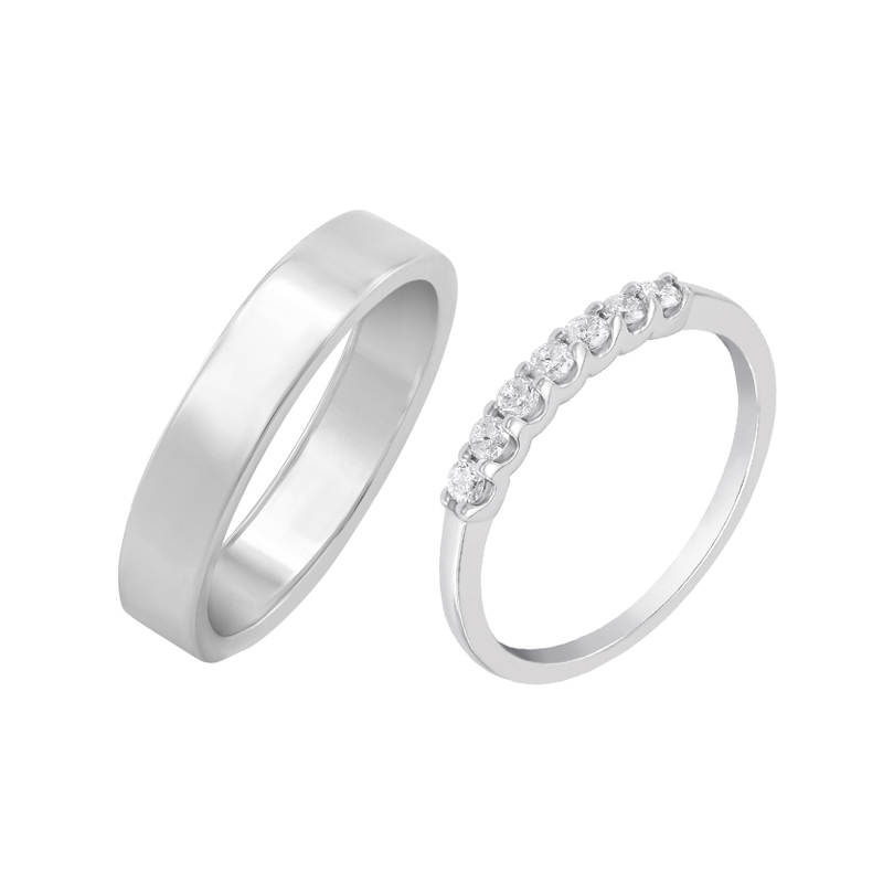 • ein flacher breiter Eternity-Ring mit geraden Linien und ein zarter Ring mit funkelnden Diamanten