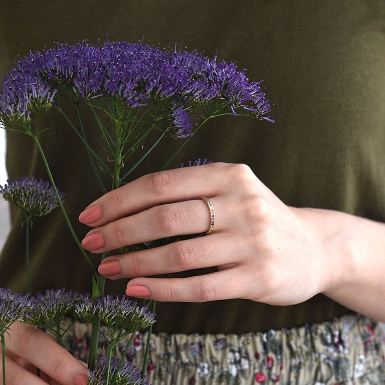 Goldener Eternity-Ring mit Edelsteinen in Regenbogenfarben Mewya