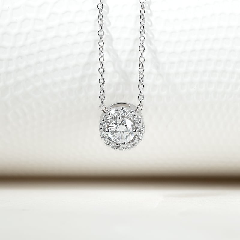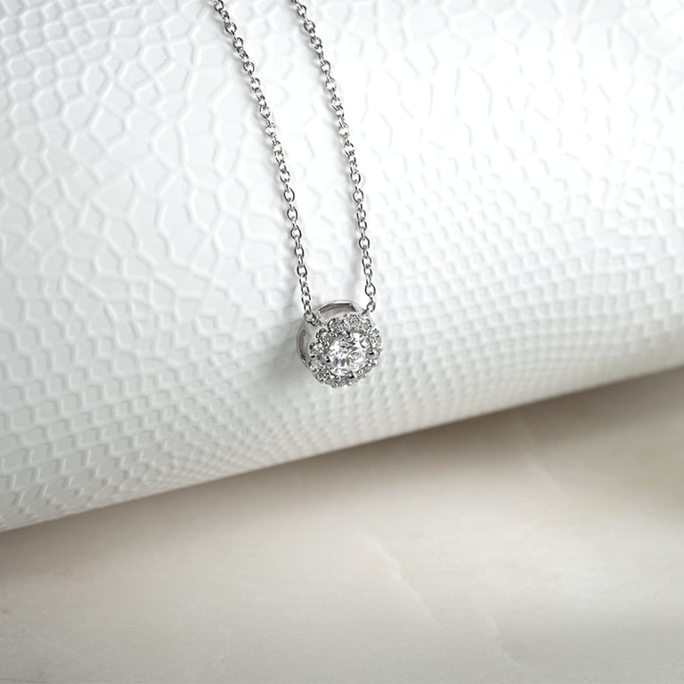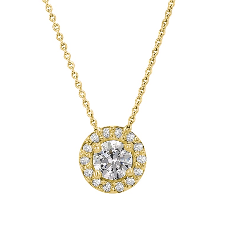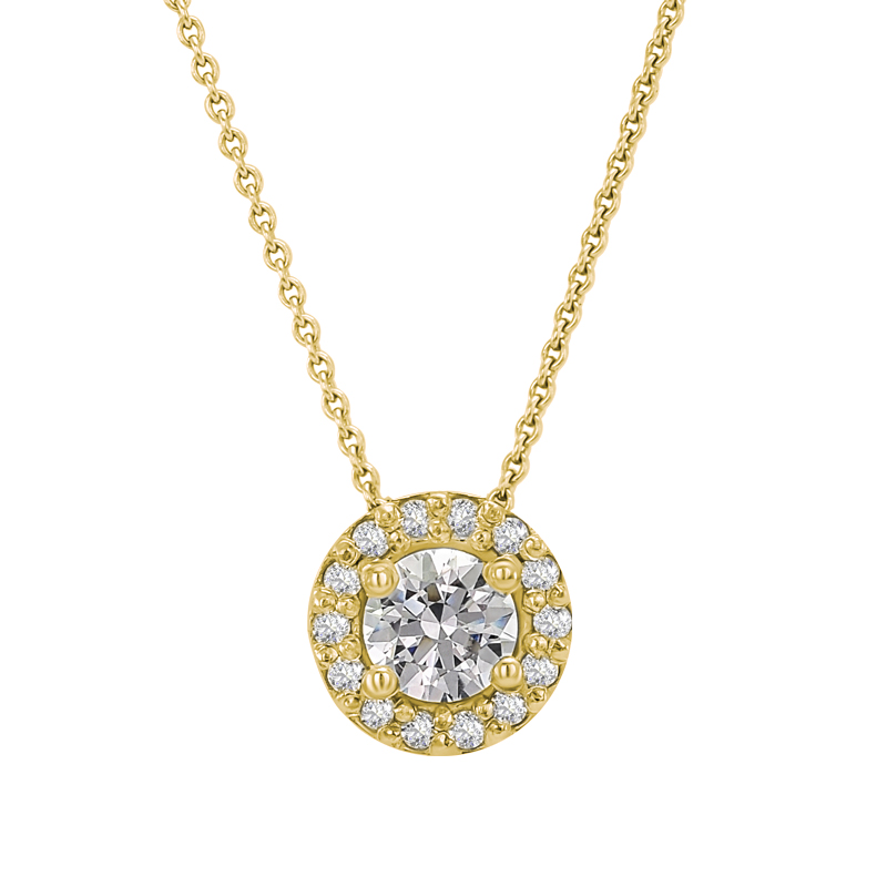 • Dieser Luxusanhänger im beliebten Halo-Stil bieten wir in allen drei Goldfarben an