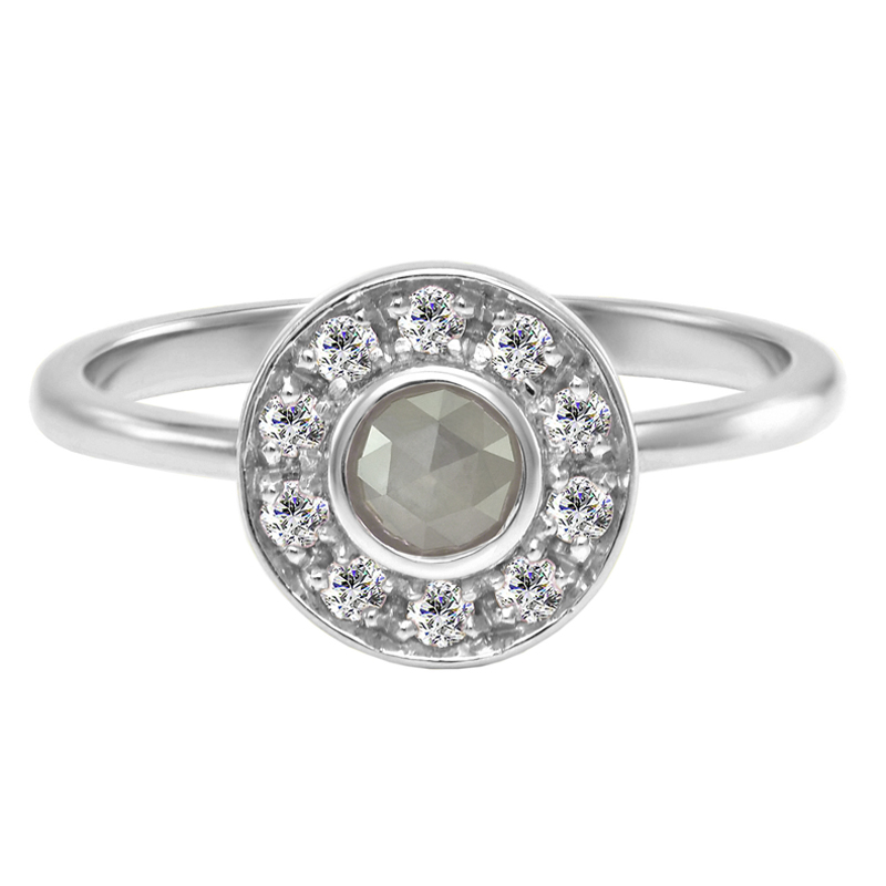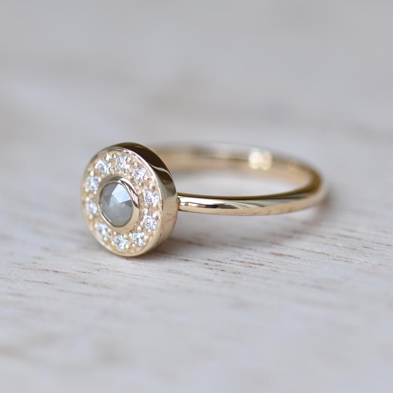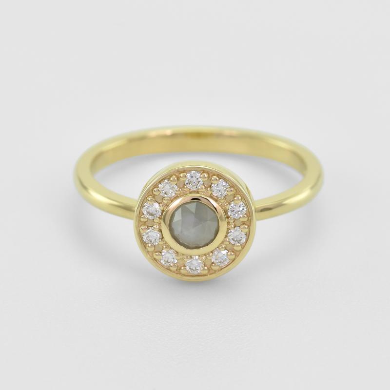 Goldener Halo-Ring mit Diamanten im Rosenschliff Estella