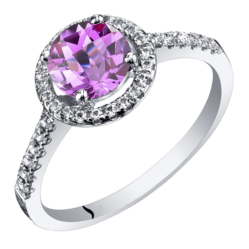 Goldener Halo-Ring mit rosa Saphir und Topas Maala
