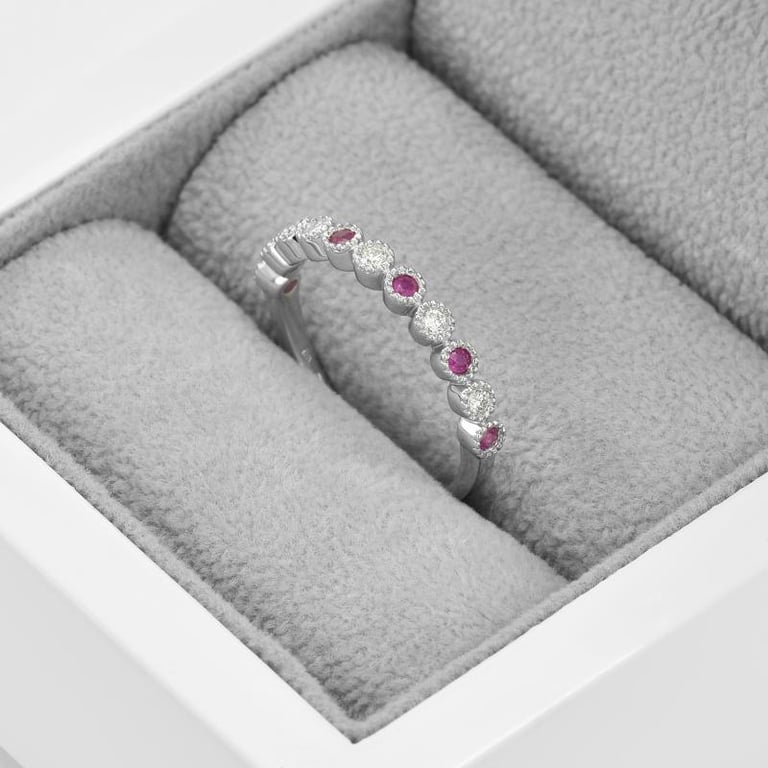 • diesen Ring mit Diamanten und Rubinen werden Sie gleich in Ihr Herz schließen