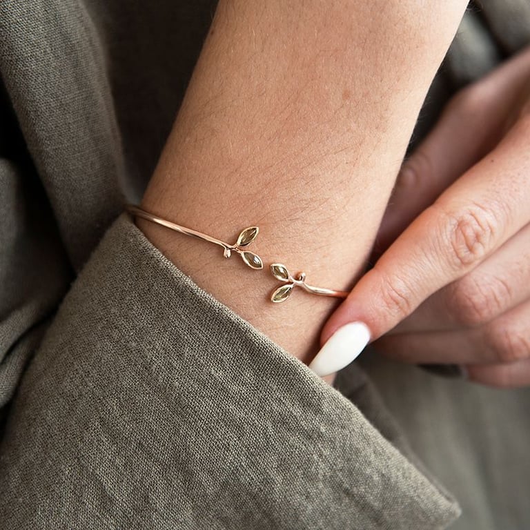 Goldener minimalistischer Armreif mit Olivenblättern Hulme