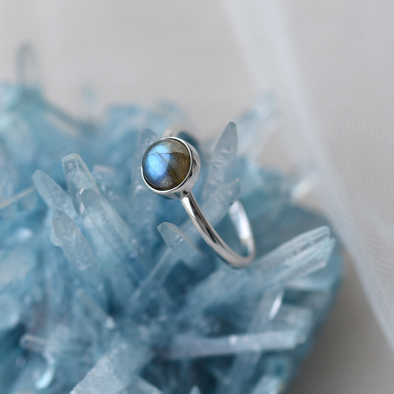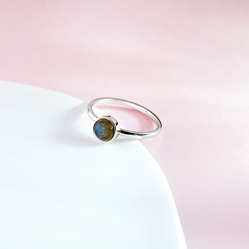 Goldener minimalistischer Ring mit Labradorit Stowy