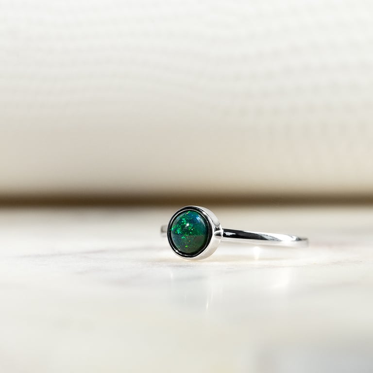 Goldener minimalistischer Ring mit schwarzem Opal Stowy