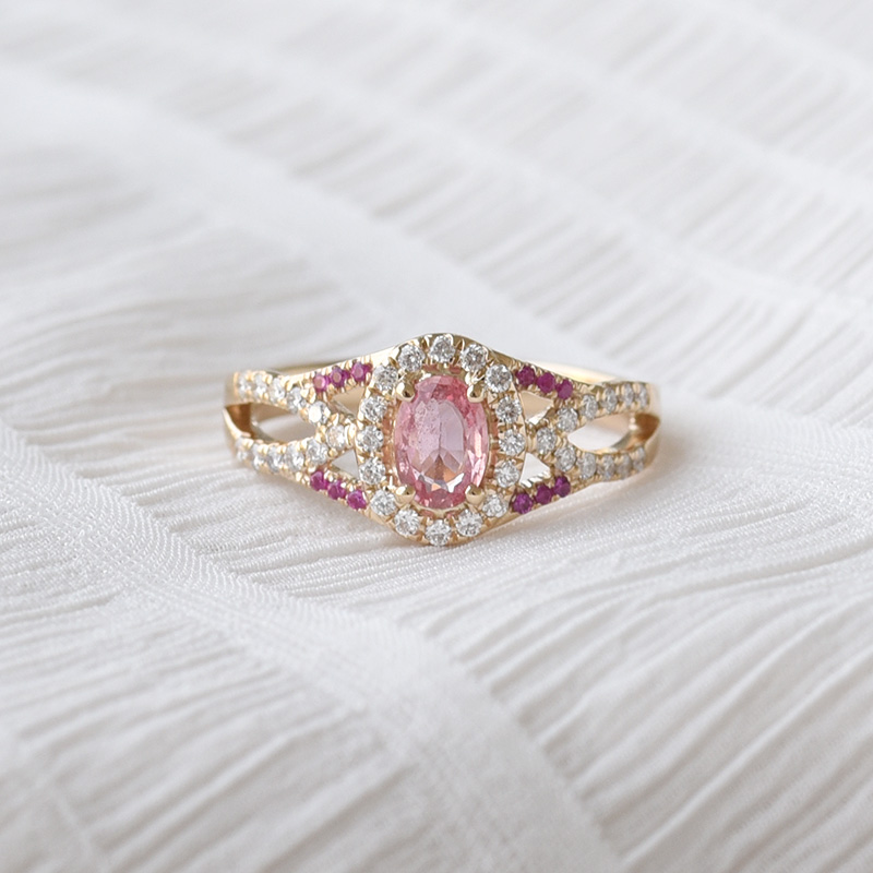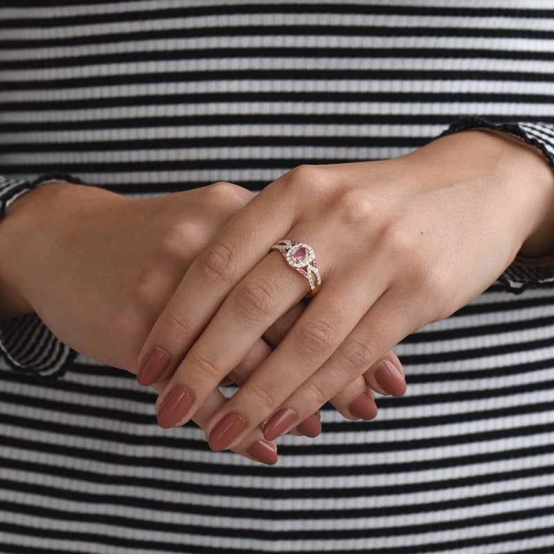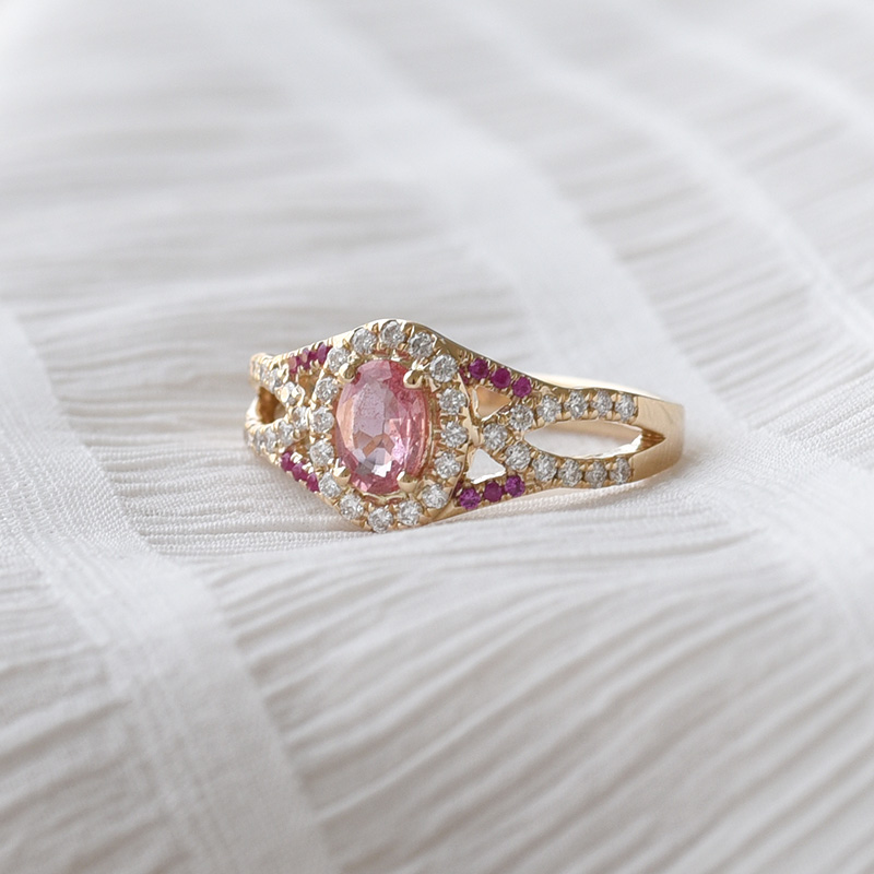 • ein verträumter Ring in rosa Tönen, der eine traumhafte Verlobung krönt