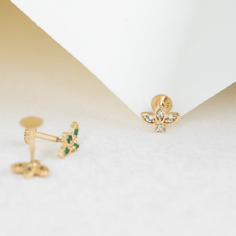 Goldener Piercing Ohrstecker mit himmelblauen Topasen Amina