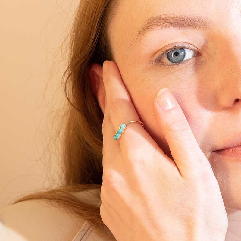 Goldener Ring in V-Form mit Türkisen Casey