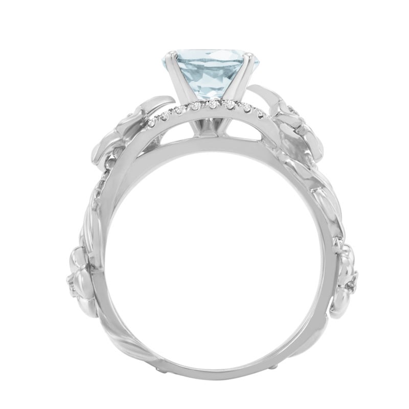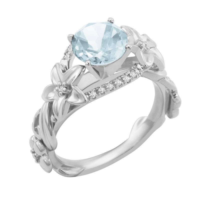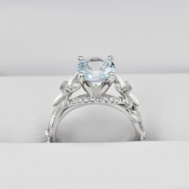 • der strahlend blaue Aquamarin ist von zwei wunderschönen Blüten umgeben