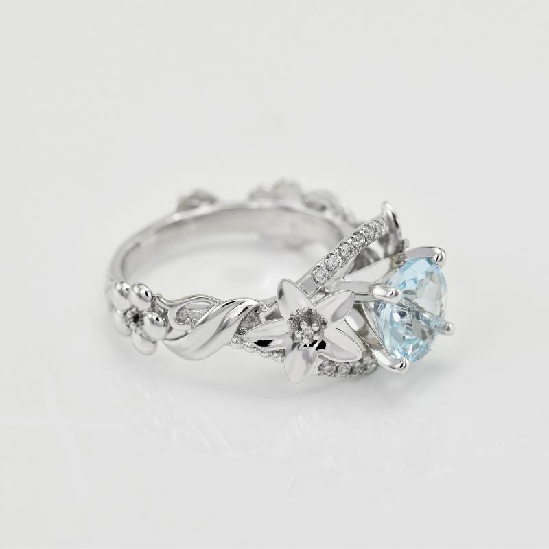 Goldener Ring mit Aquamarin-Blüte und Diamanten Lirija