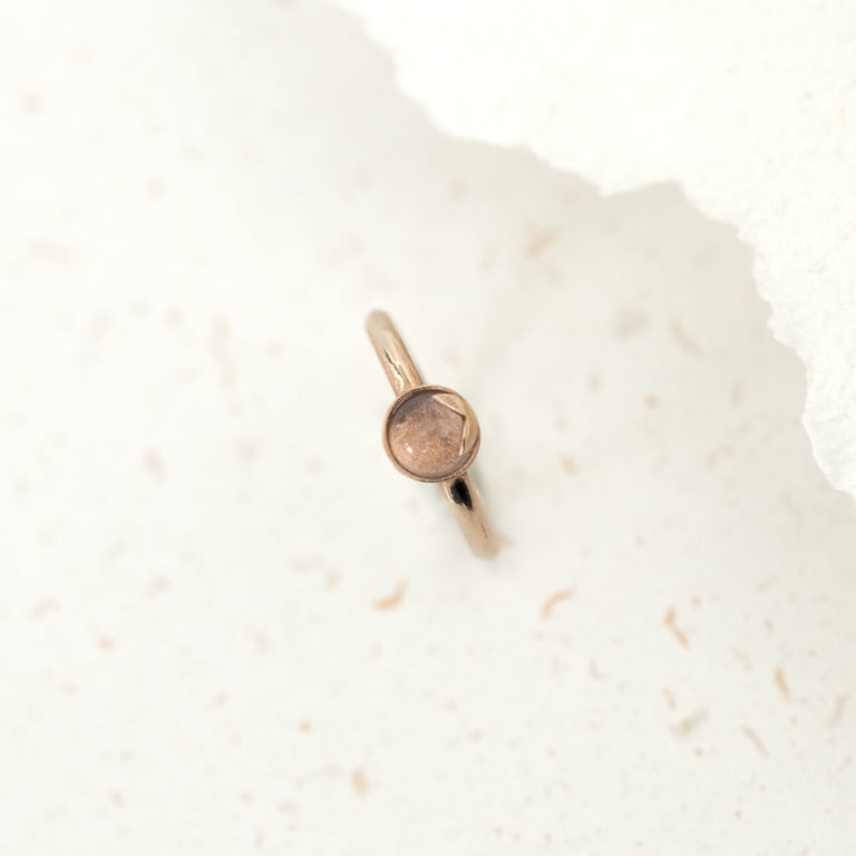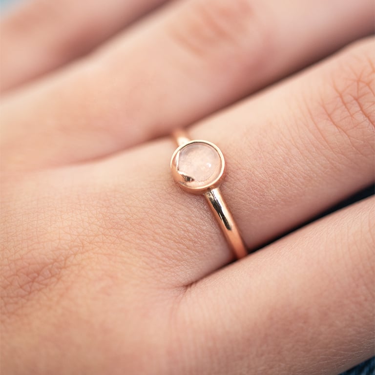Goldener Ring mit Cabochon-Rosenquarz Yana