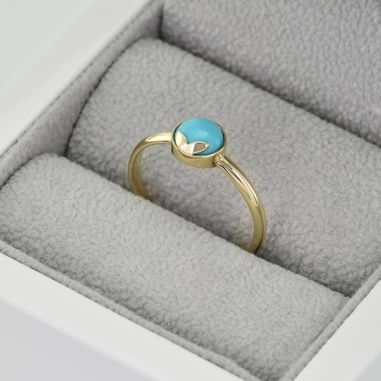 • der Türkis wird von der Fassung aus Gelbgold kunstvoll betont