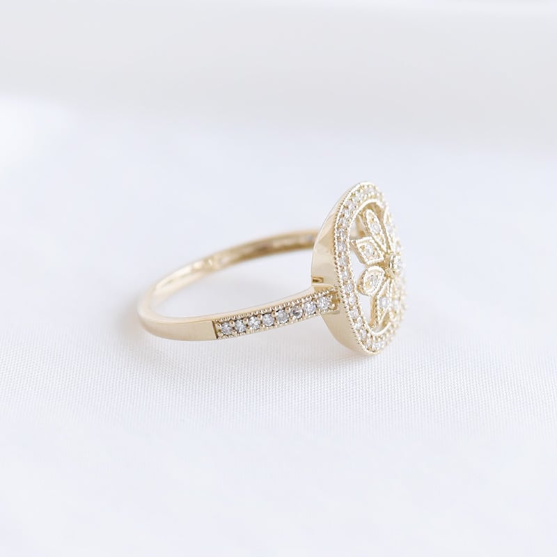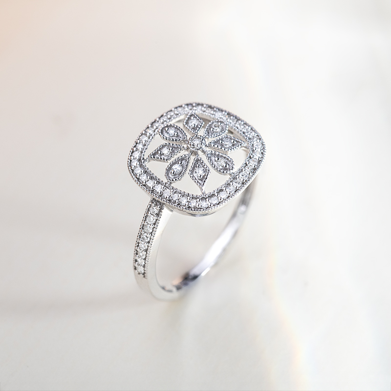 • eine Blüte aus Weißgold und Diamanten, die für immer an Ihrer Hand strahlen wird