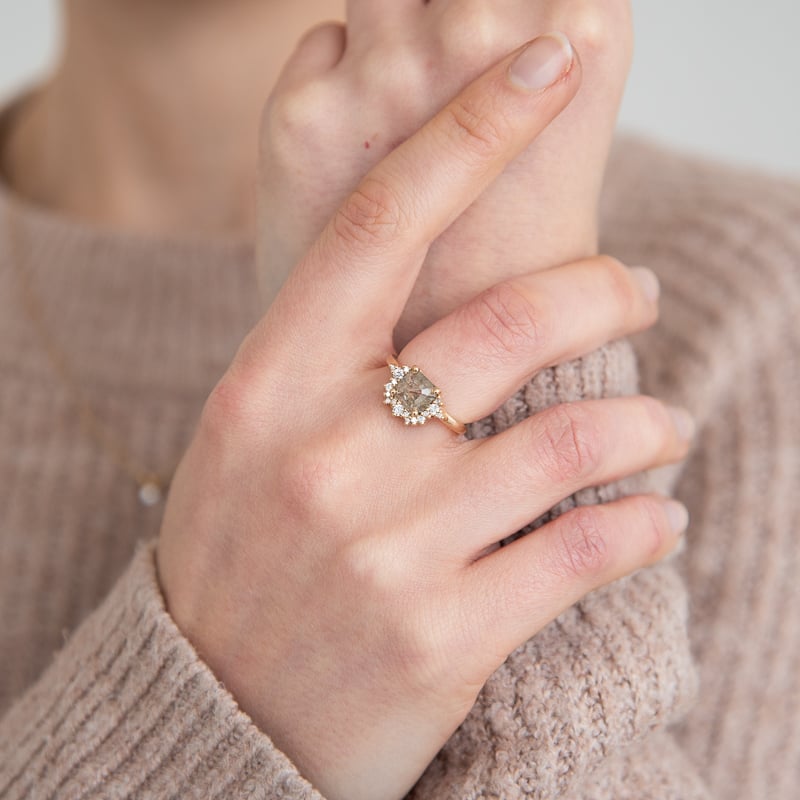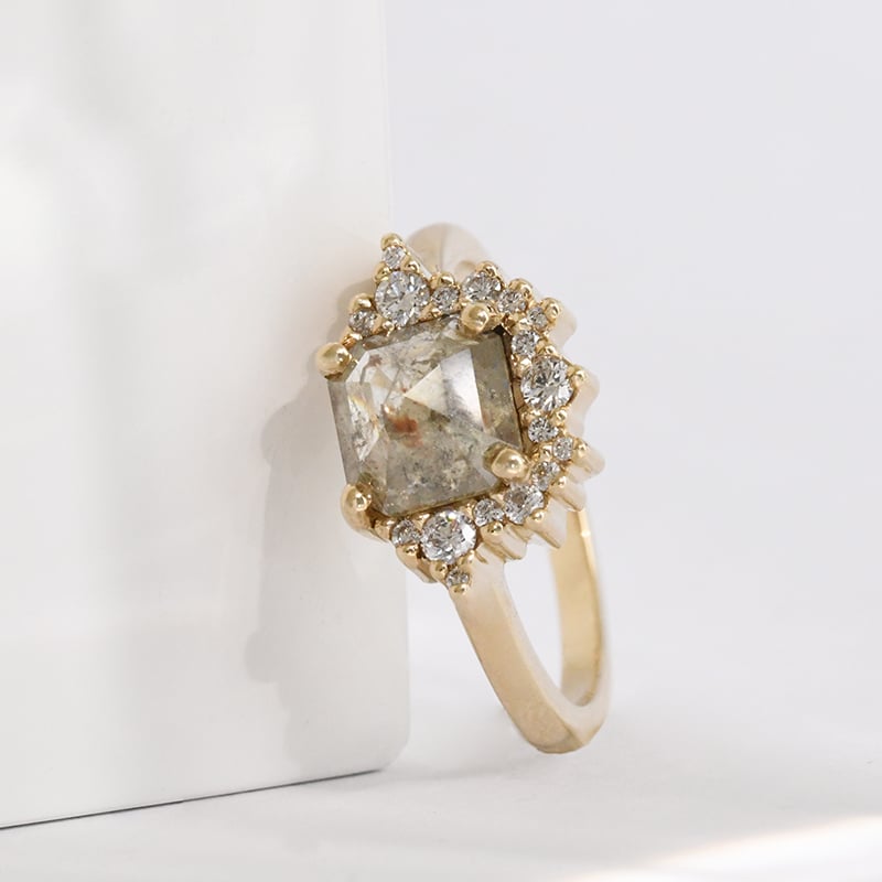 Goldener Ring mit einem Salt and Pepper Diamanten in Radiantschliff Aleta