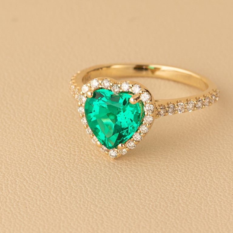 Goldener Ring mit Lab Grown Smaragd in Herzform und Diamanten Harold