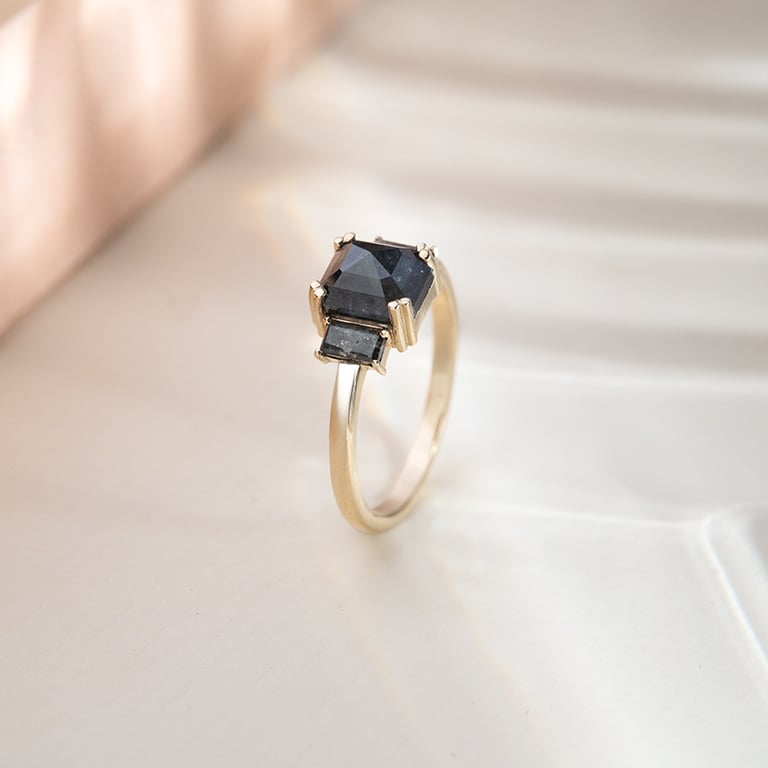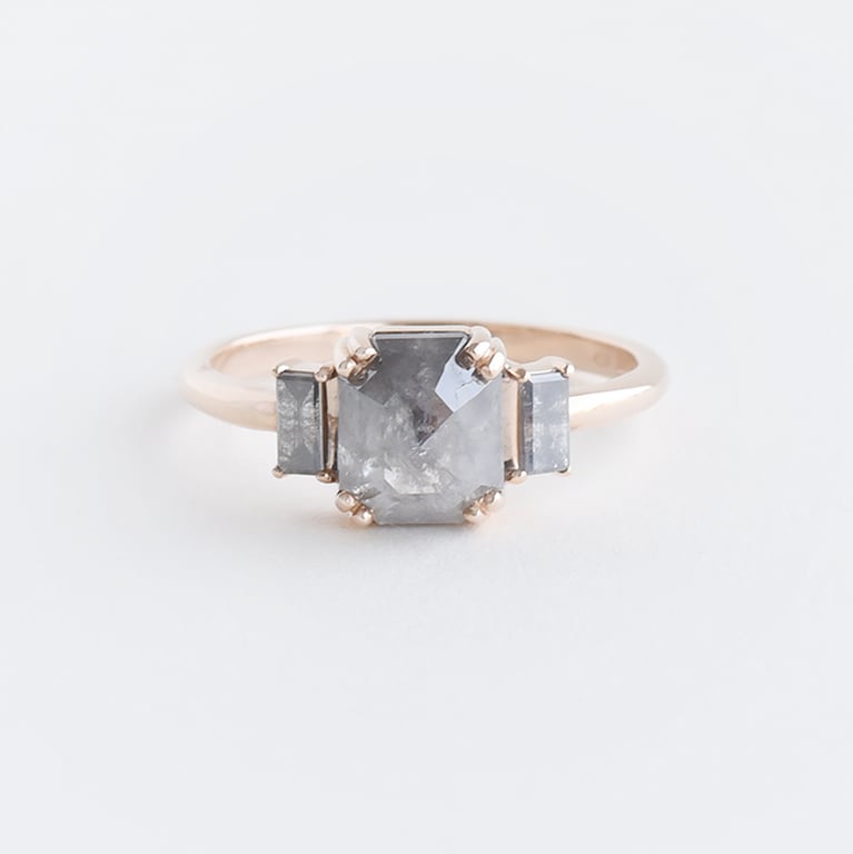 • Ring aus recyceltem Gold besetzt mit hellgrauen Salt and Pepper Diamanten