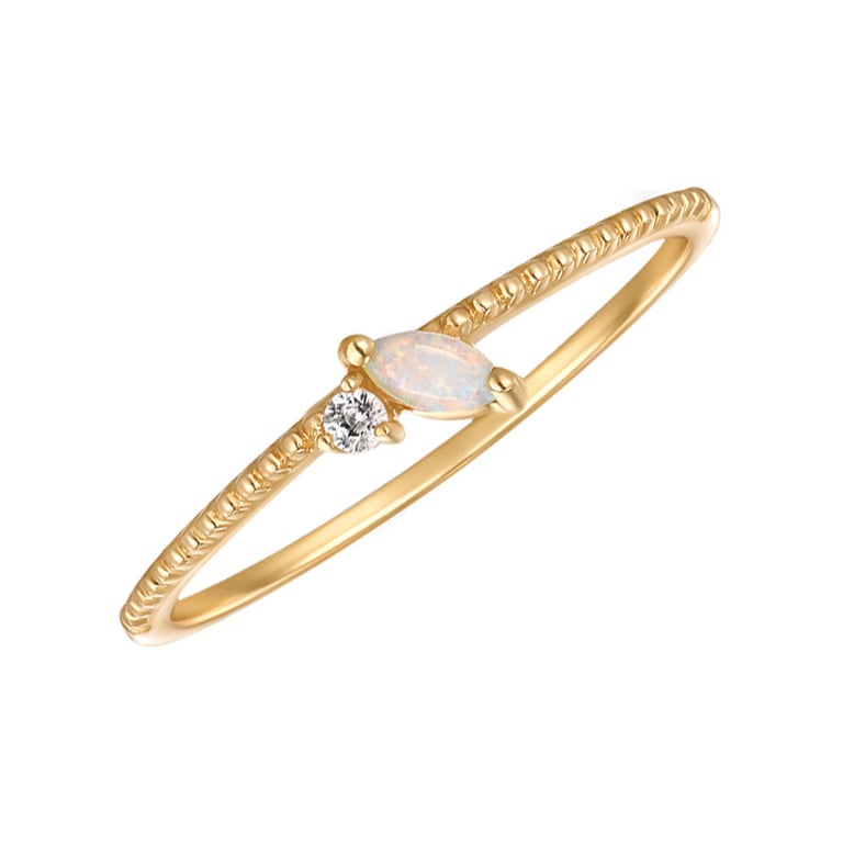 • der schmale Ring mit seinen kugelförmigen Verzierungen ist mit schönen, natürlichen Edelsteinen - Opal und weißem Saphir - geschmückt