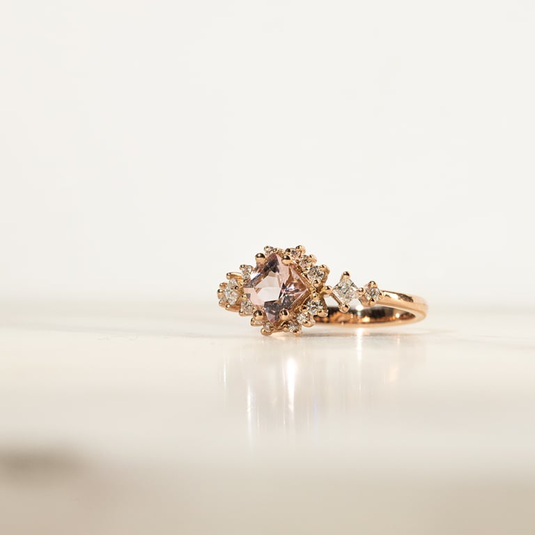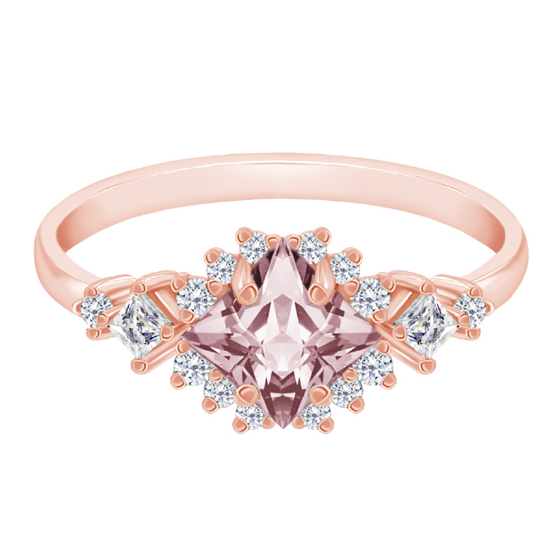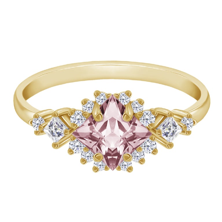Goldener Ring mit Princess Morganit und Moissaniten Medrie