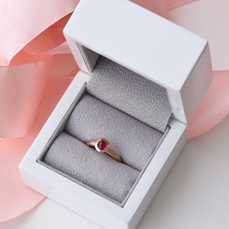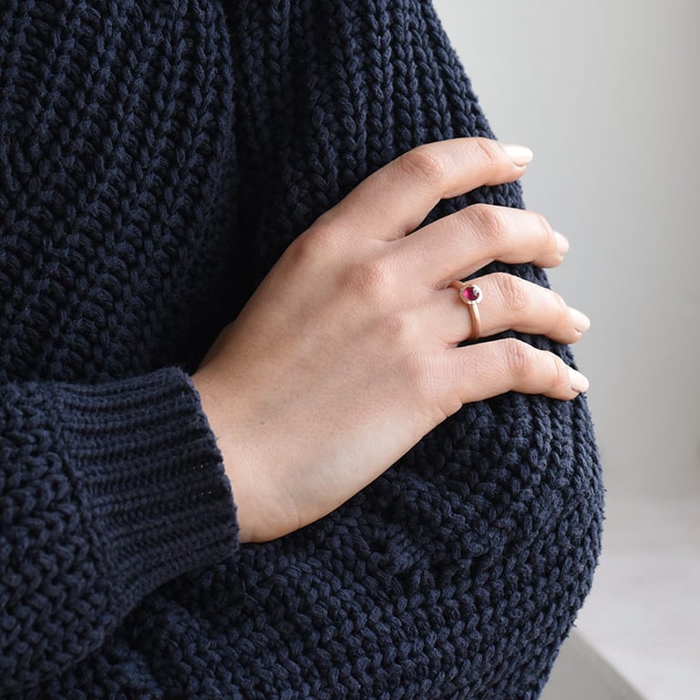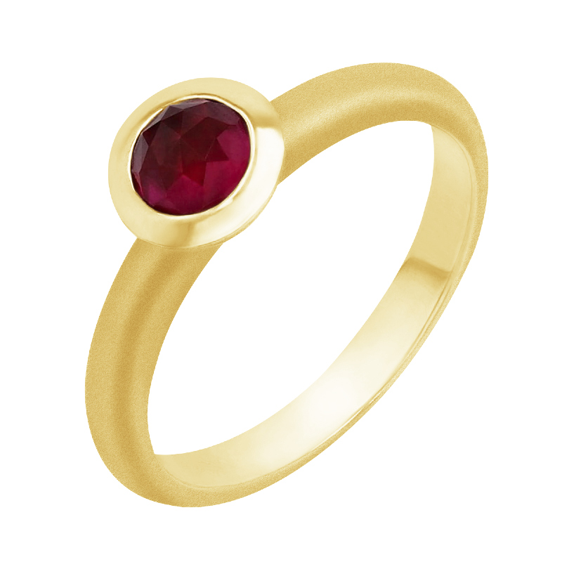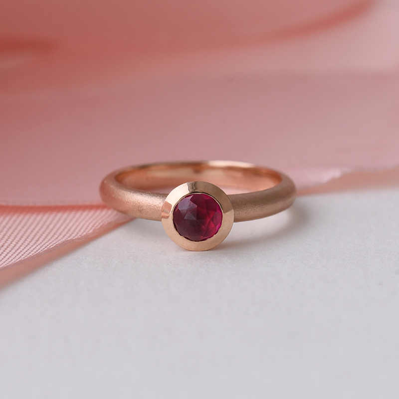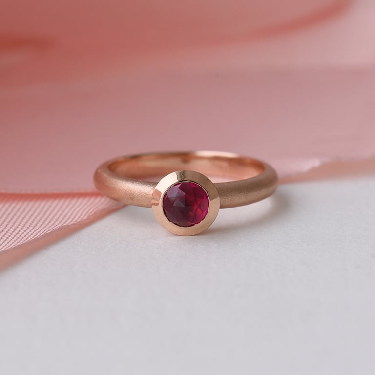 • minimalistischer Goldring mit Rubin im originellen Rosenschliff