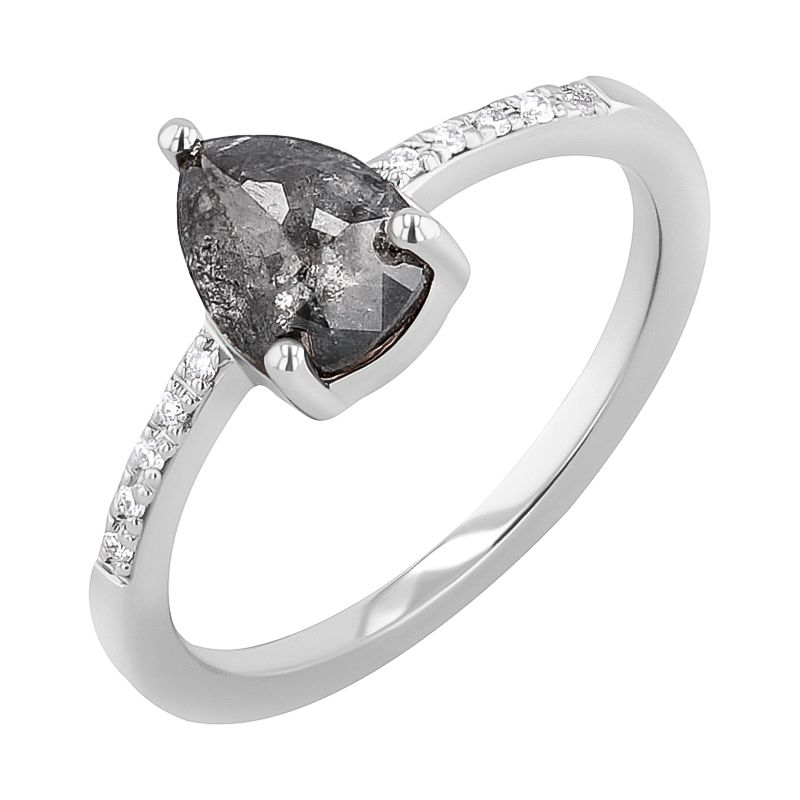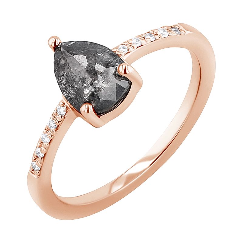 • ein seidig grauer Salt and Pepper Diamant in Form eines Tropfens spielt die Hauptrolle