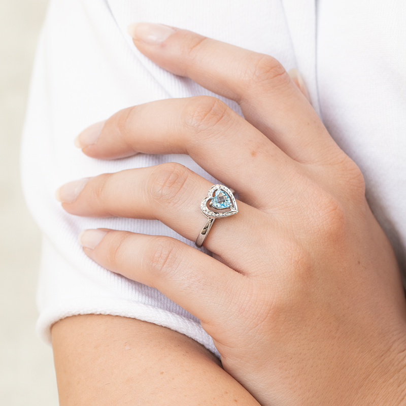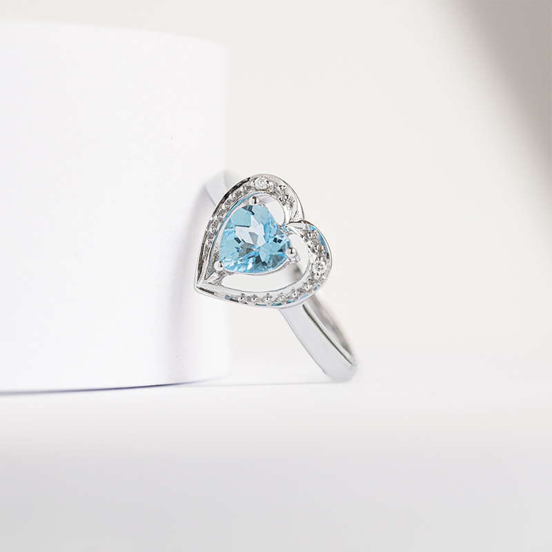 • ein Schweizer Topas in einem beruhigenden, mitteltiefen Blau ist in Herzform geschliffen