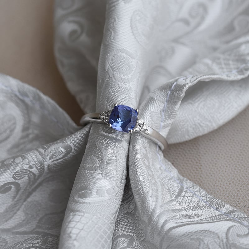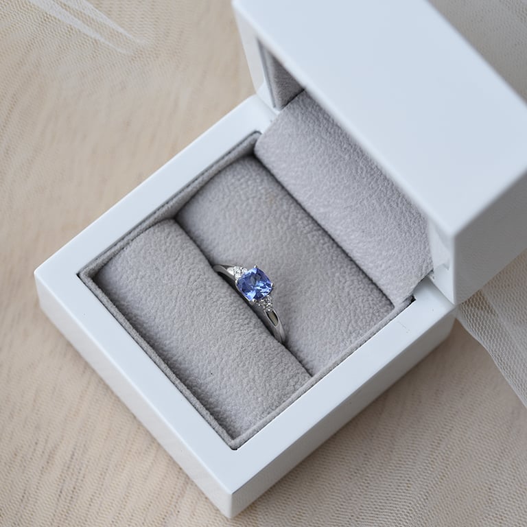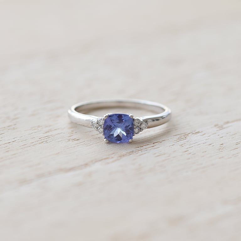 • wie ein wolkenloser Himmel wirkt dieser Tansanit, der in einem Ring aus Weißgold sitzt