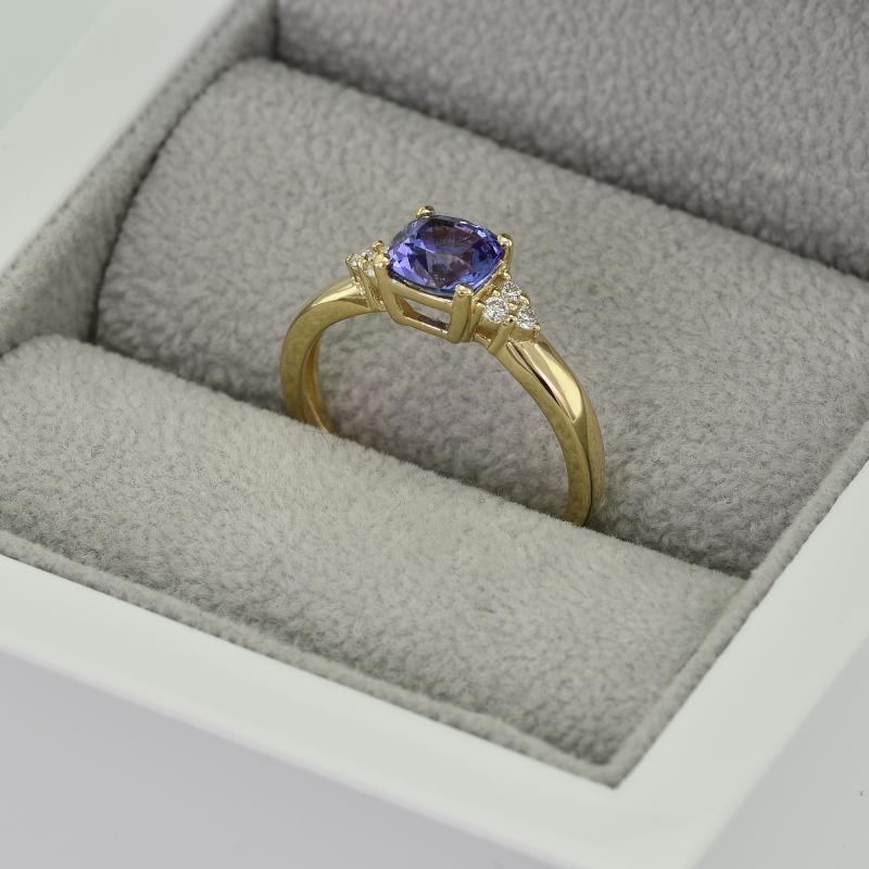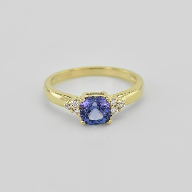 • der funkelnde Tansanit ist von den Königen der Steine umgeben, den Diamanten