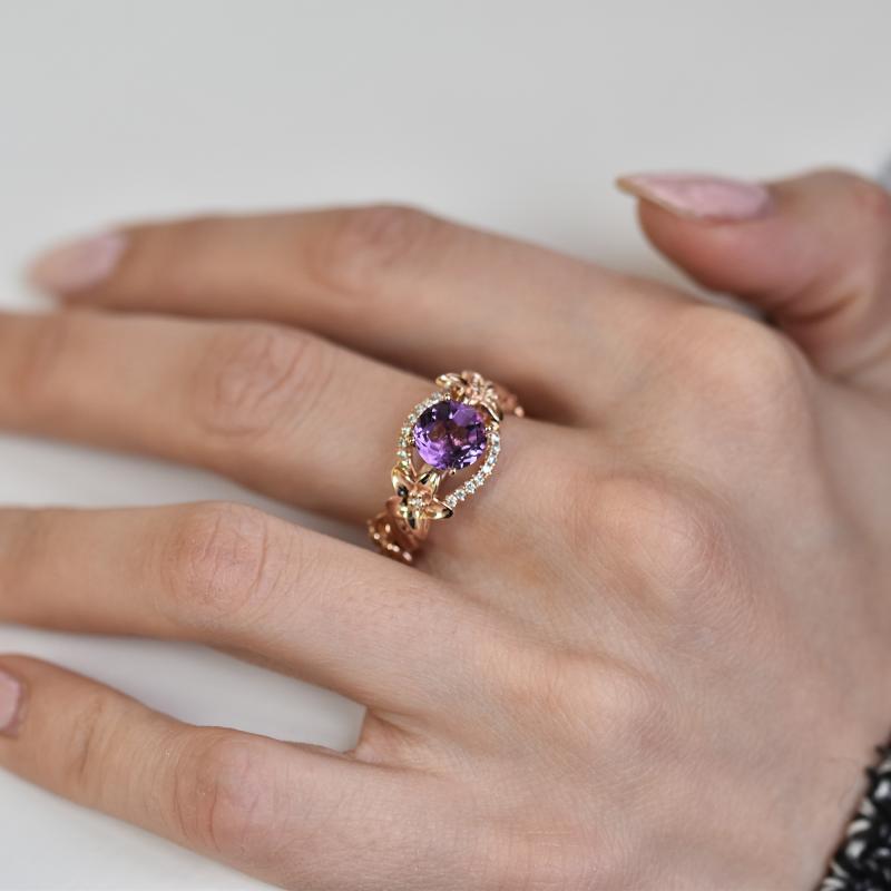 Goldener Rting mit Amethyst und Diamanten Dinis