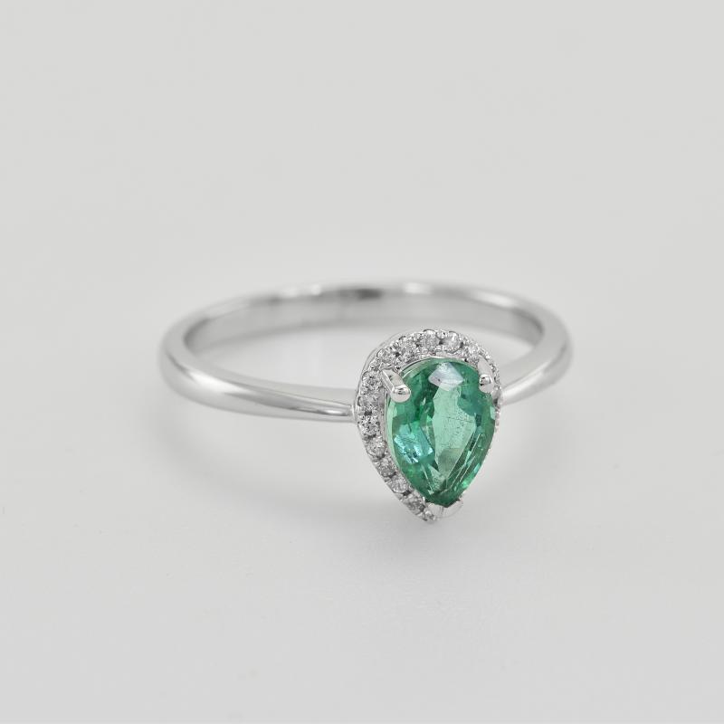 • der Smaragd, der diesen Ring dominiert, wird von einem Diamantenband eingerahmt