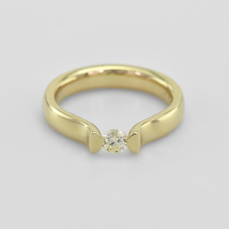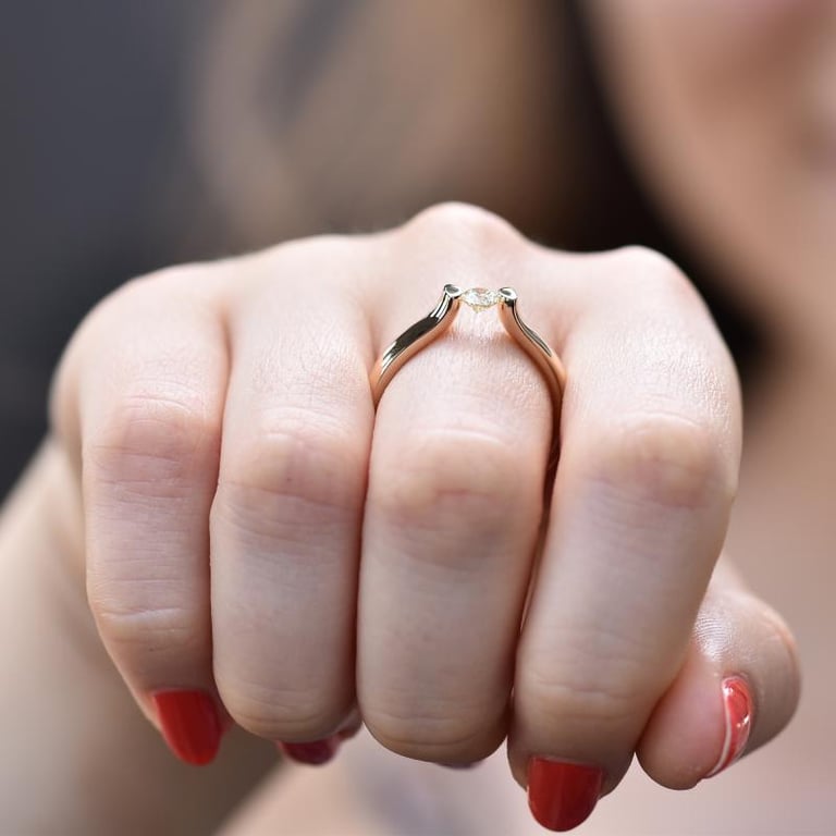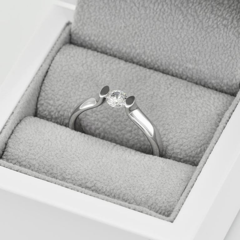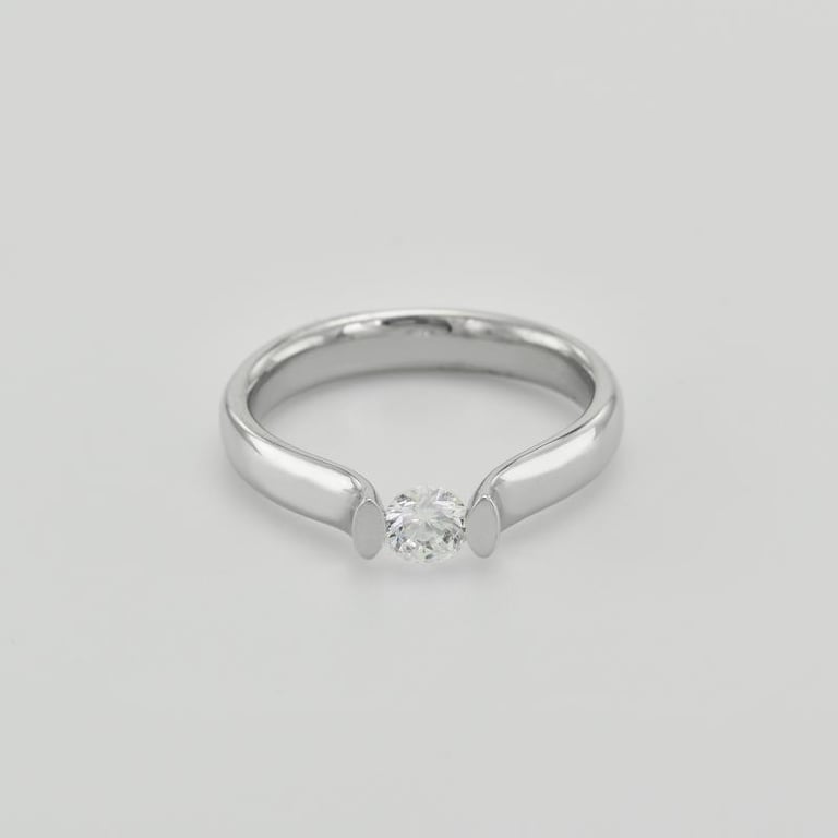 • die Spannfassung in Reinform lässt den Diamanten schweben