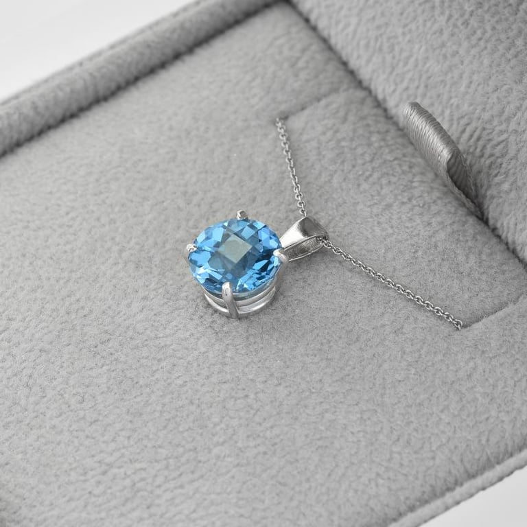 • so ist der goldene Anhänger mit einem strahlend blauen Topas