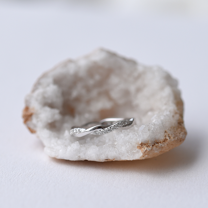 • der zarte Diamantring wird von insgesamt dreißig strahlenden Diamanten geschmückt