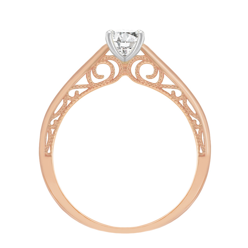• der romantische Vintage Ring ist aus Roségold mit einem 0.55 Karat HRD zertifizierten Diamanten