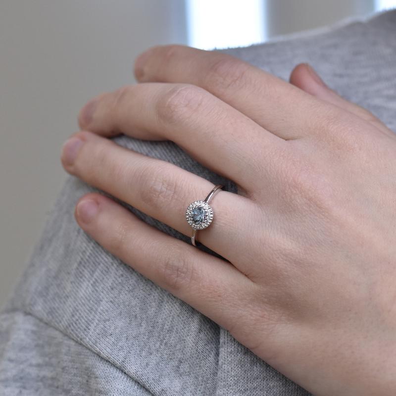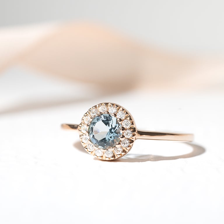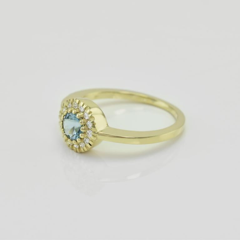 • der Verlobungsring hat einen Aquamarin mit speziellem Blauton im Mittelpunkt
