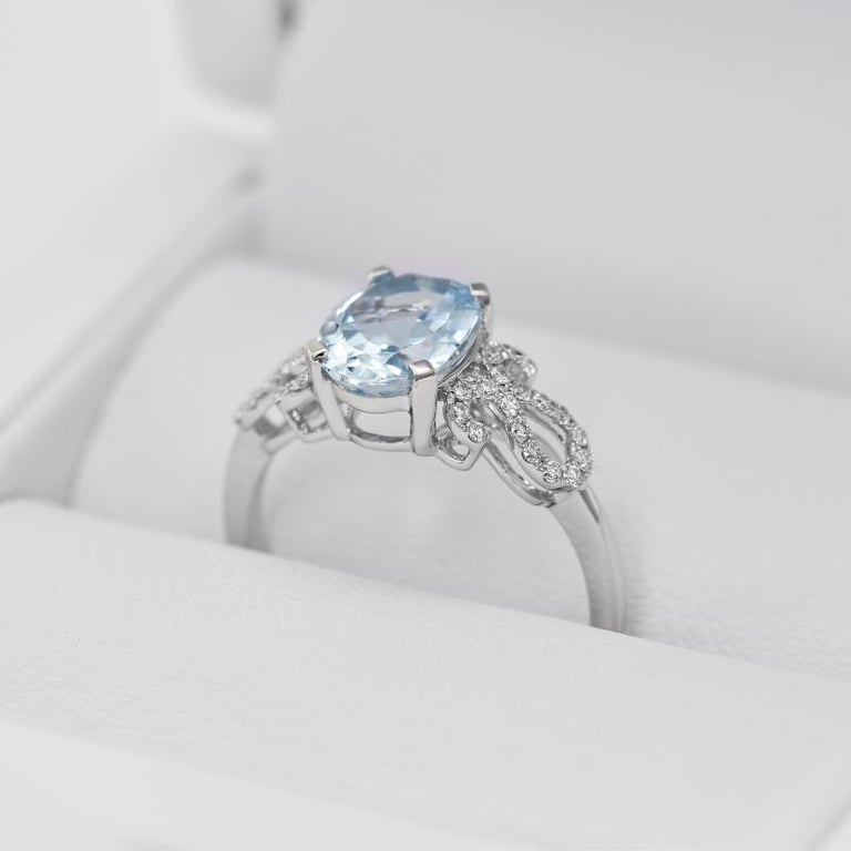 • Verlobungsring aus Gold mit Aquamarin und glänzenden Diamanten