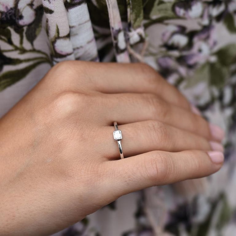 • ein elegante Look und der Diamant im Smaragdschliff machen dieses Juwel zu einem unverwechselbaren Bestandteil perfekter Verlobungen.