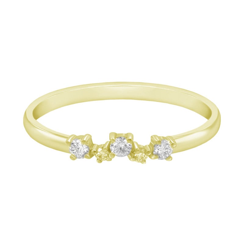 • ein eleganter Verlobungsring mit fünf Diamanten, dessen zarte Schönheit alle romantischen Seelen verzaubert