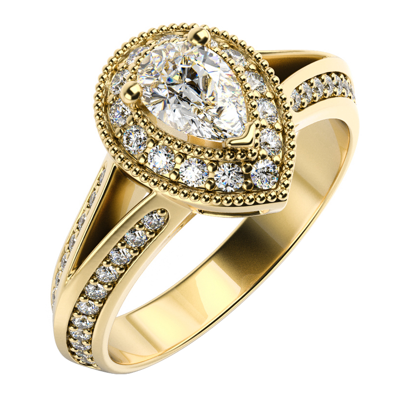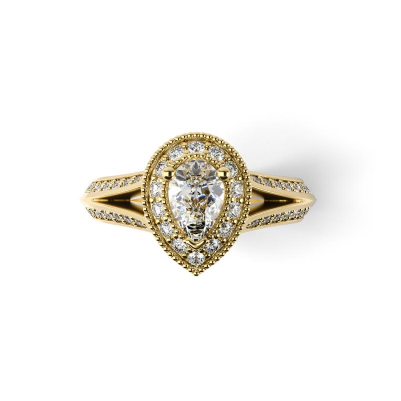 • dieser goldene Verlobungsring beeindruckt mit seinem ausgefallenen Design