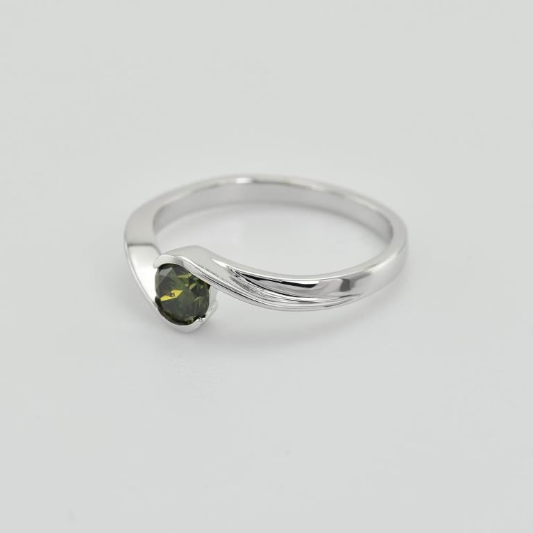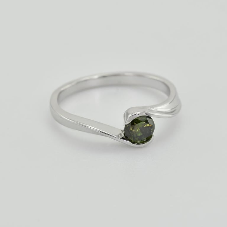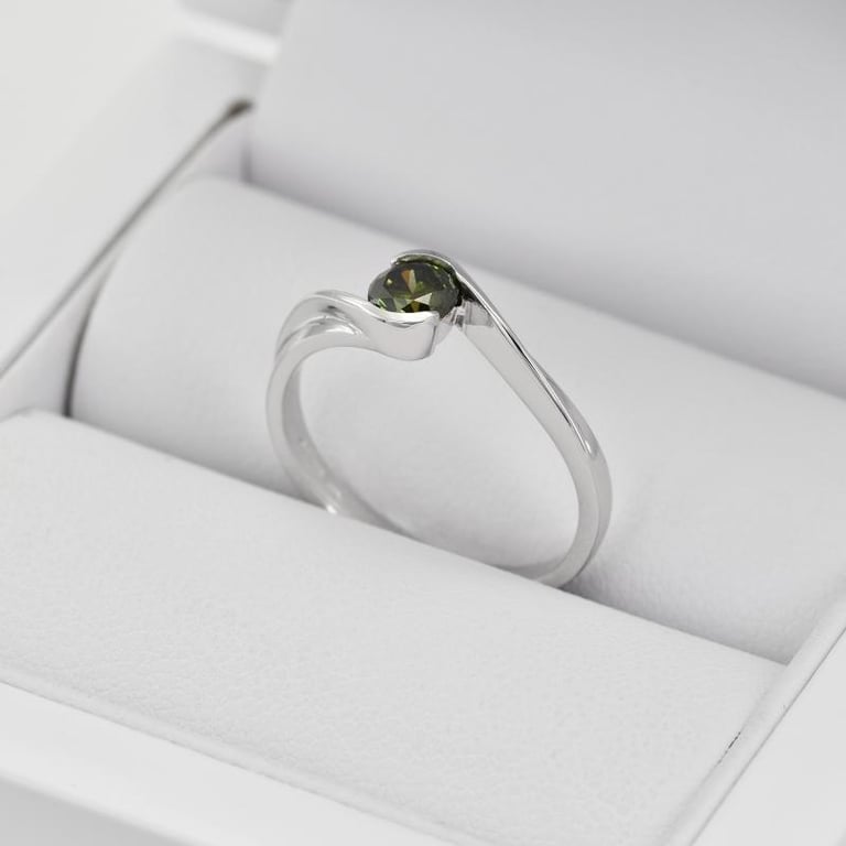 • raffiniert und modern verarbeiteter Verlobungsring mit einem waldgrünen natürlichen Diamanten