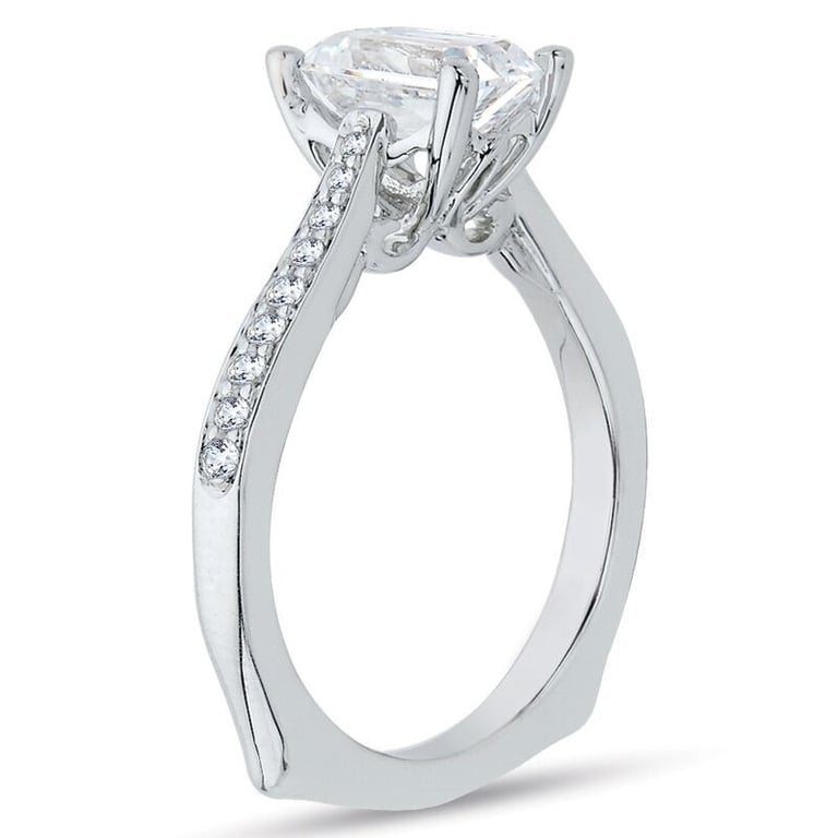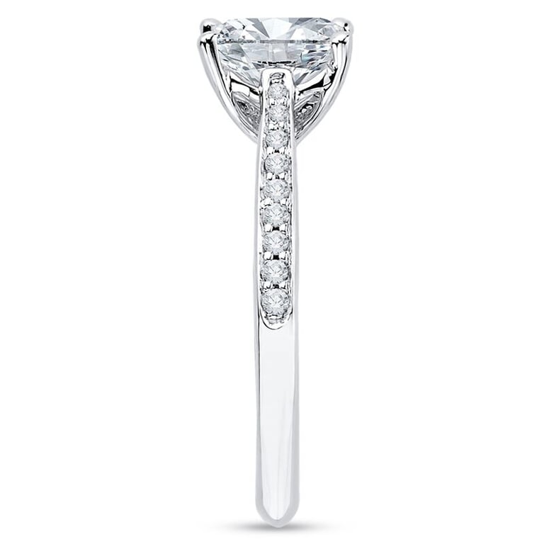 • dem Ring dominiert ein atypisch geschliffener Moissanit in einer Flut aus lab grown Diamanten