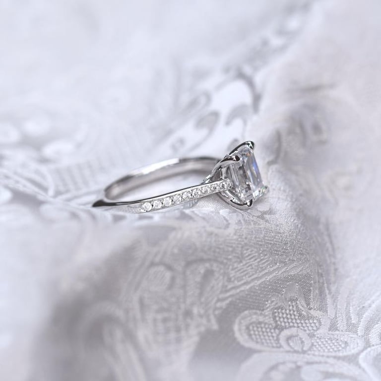 Goldener Verlobungsring mit Moissanit im Smaragdschliff Rafa