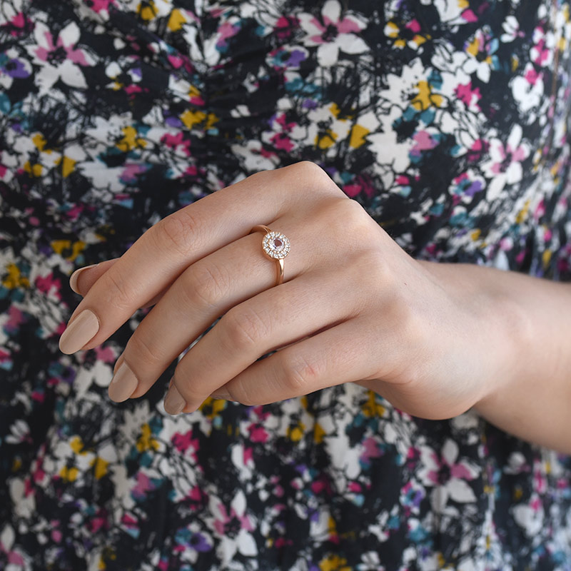 Goldener Verlobungsring mit Morganit und Diamanten Tafne