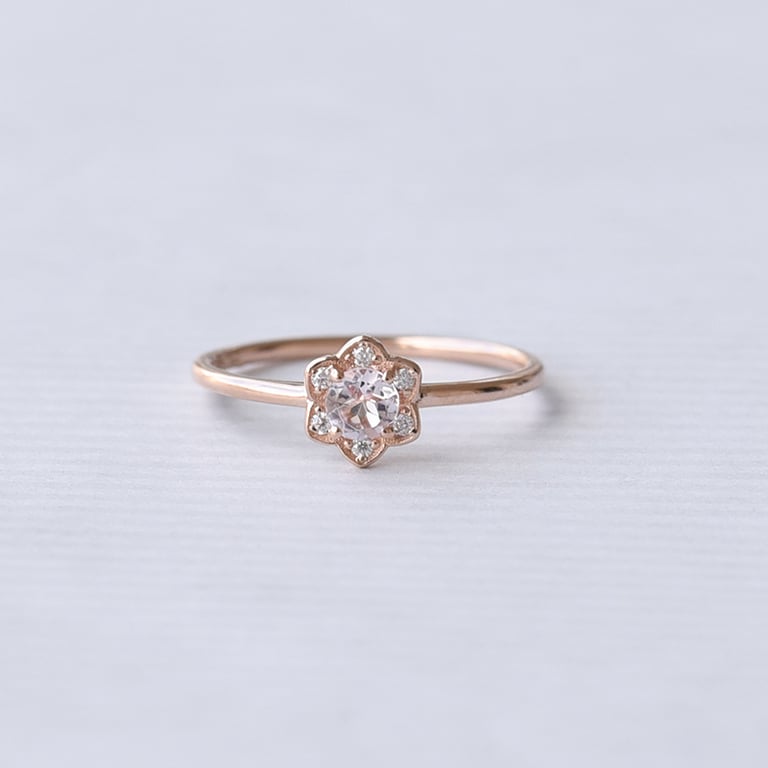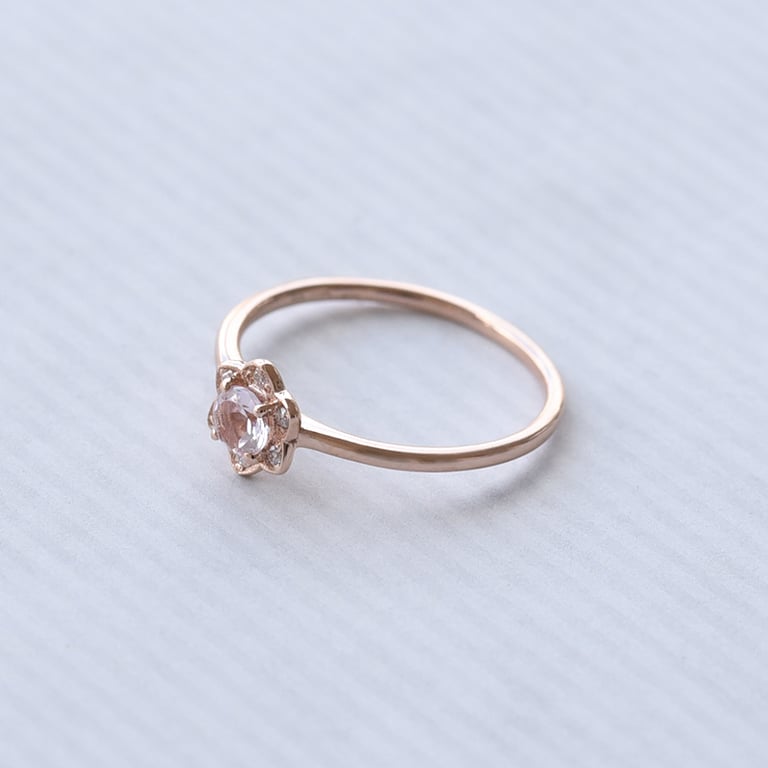 Goldener Verlobungsring mit Morganit und Moissaniten Mia